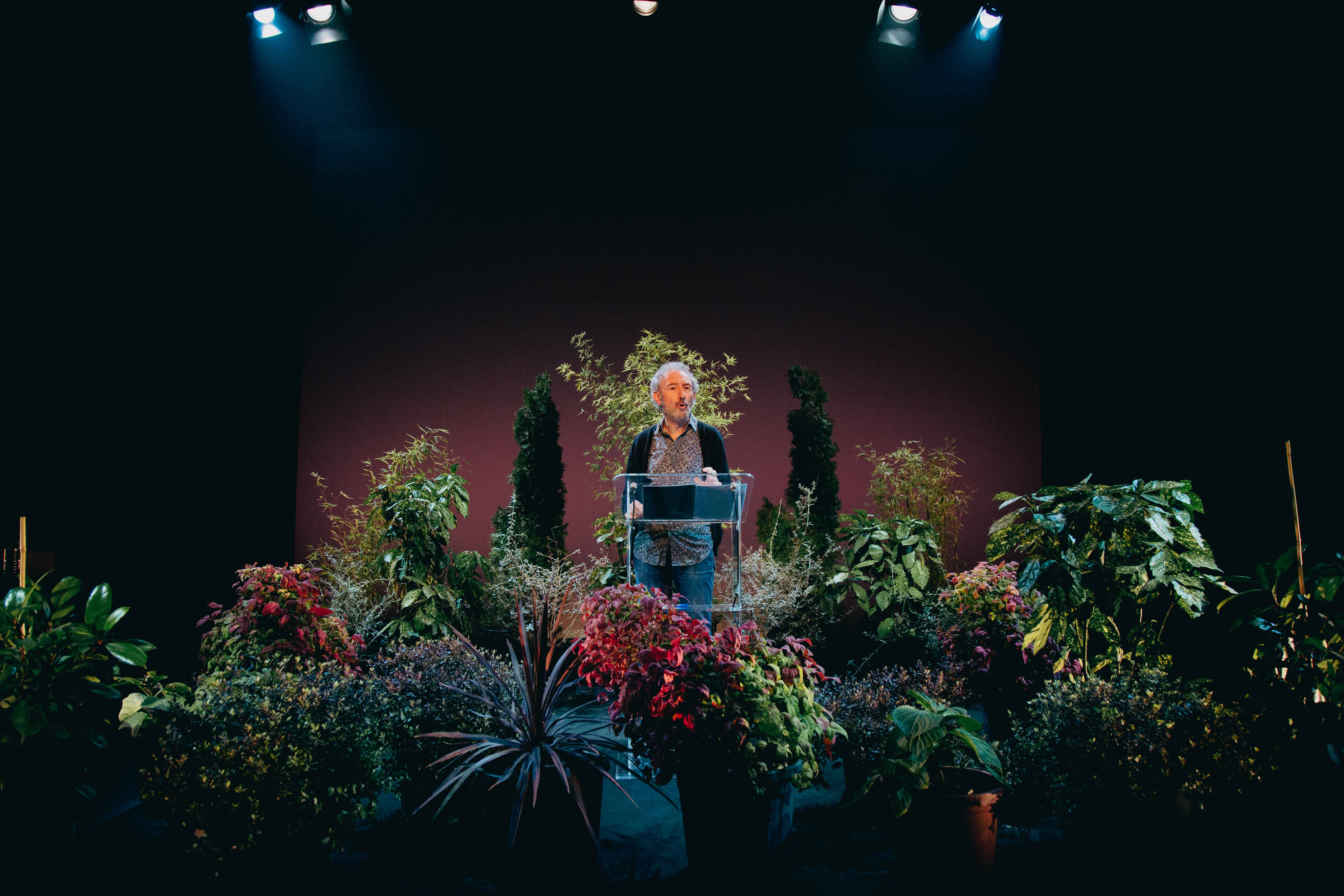 Hasta la fecha las personas nos hemos esforzado por domesticarlas y ponerlas a nuestro servicio; hora es ya de aceptar que son seres más evolucionados que nosotros y nos pueden enseñar a habitar la Tierra de otra manera. En este diálogo escénico un jardinero intenta explicar a un auditorio formado por plantas en qué consiste ser humano, y de paso propone volver la mirada hacia la naturaleza en busca de un principio de esperanza.